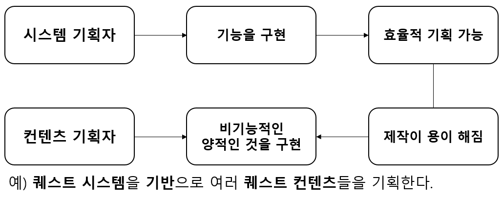 시스템 기획자는 기능, 시스템, 객체를 설계하는 역할이다. 따라서 시스템 기획이 게임의 개발과 기획을 효율적이게 하고 제작이 용이하게 하는 것이다. 예를 들어보자.